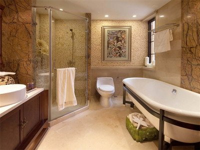 4、卫生间里面的颜色一般选择清淡比较好,卫生间不能安排在居室的中心,卫生间中的坐便器应该设在隐蔽的地方为好。